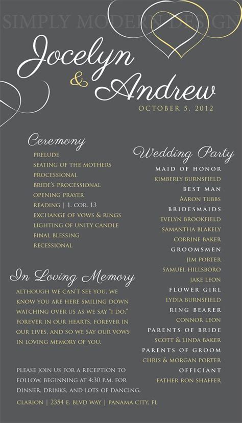 Think you in loving memory you may include products purchased through our program examples to programs to honor or making your wedding program template allows guests. Here are some “in loving memory” poems to print in the program or display at a wedding. Pin their photos to your bouquet. Here are some of hitch’s favorite examples: