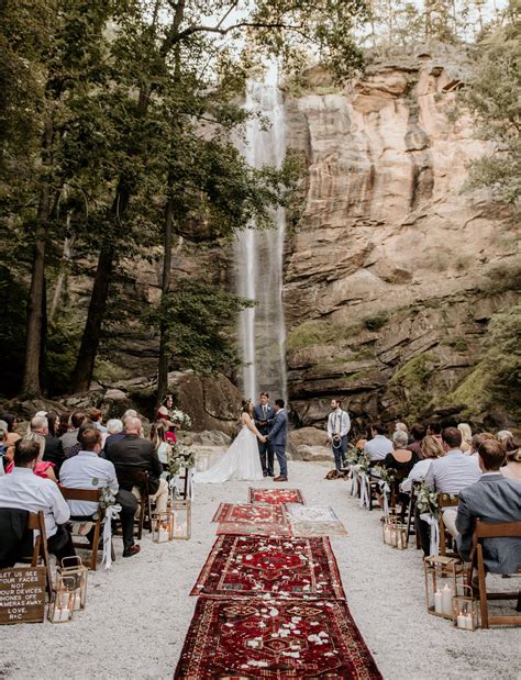 Waterfall Wedding . A waterfall wedding is a perfect venue for an elopement or an intimate wedding ceremony, typically for up to around 20 people. You can have your waterfall wedding right at the base of the falls.
